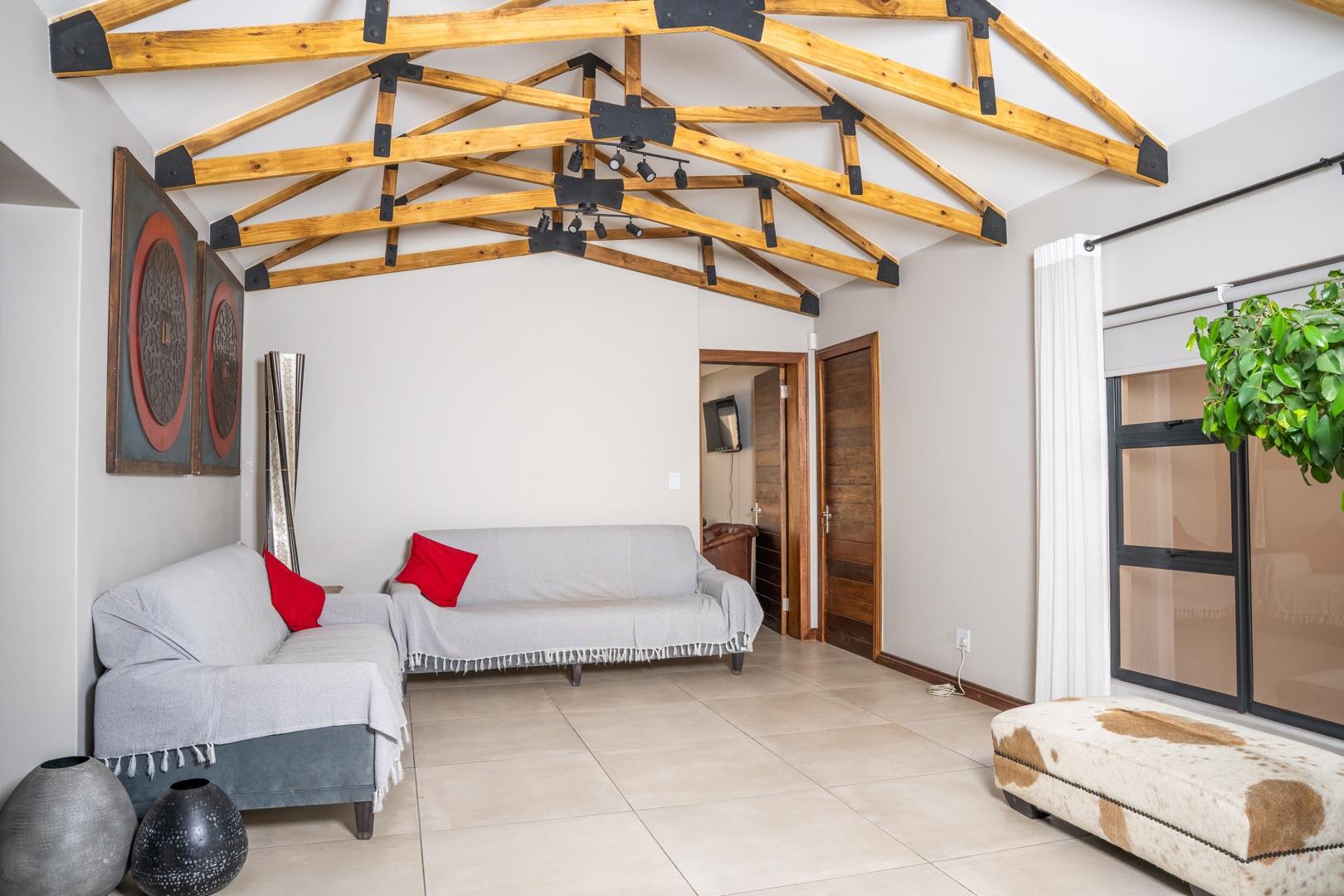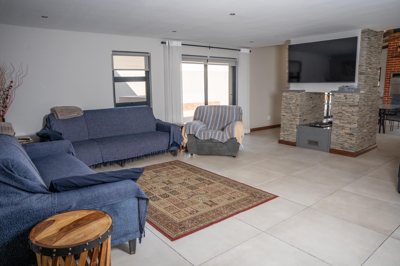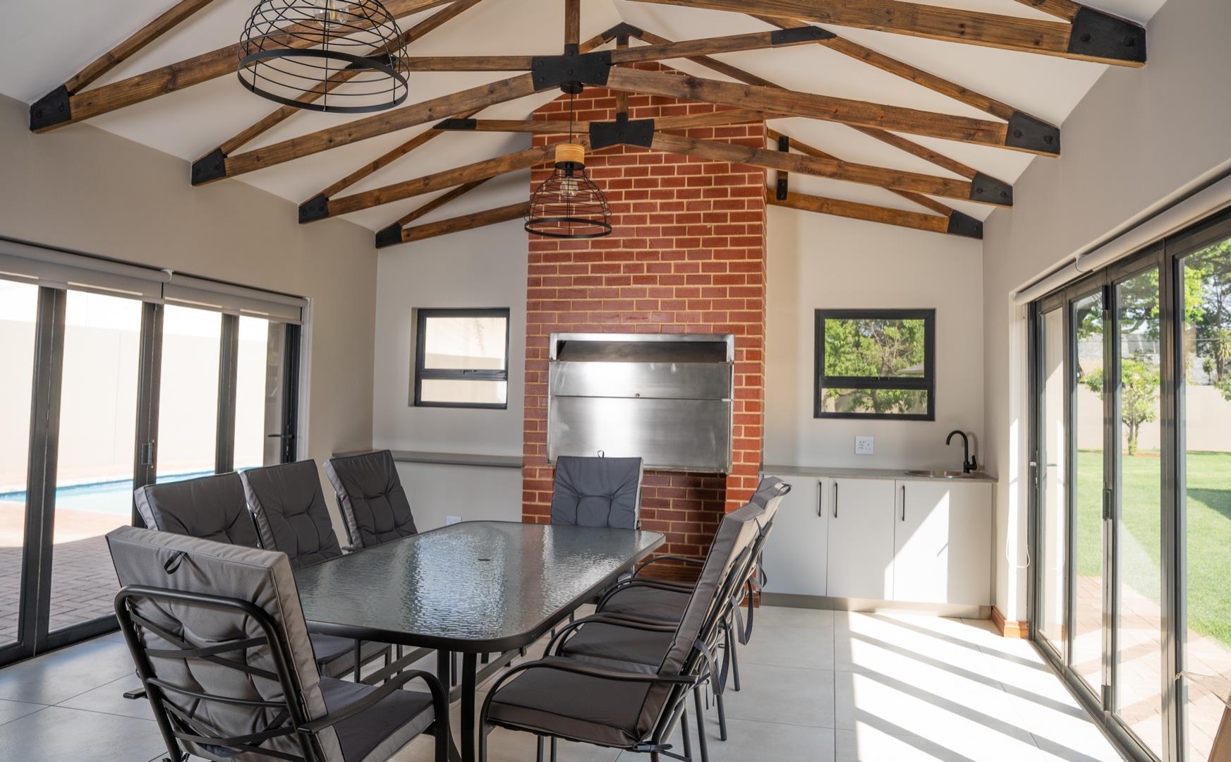 Enclosed entertainment patio with stacker doors and built-in braai, perfect for year-round entertaining