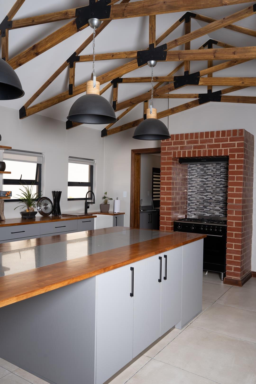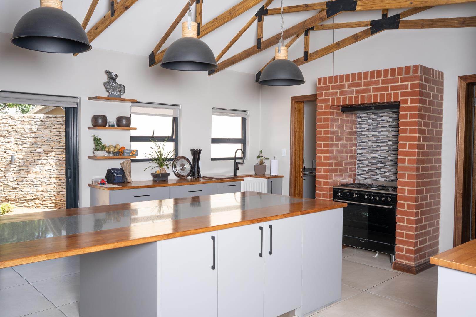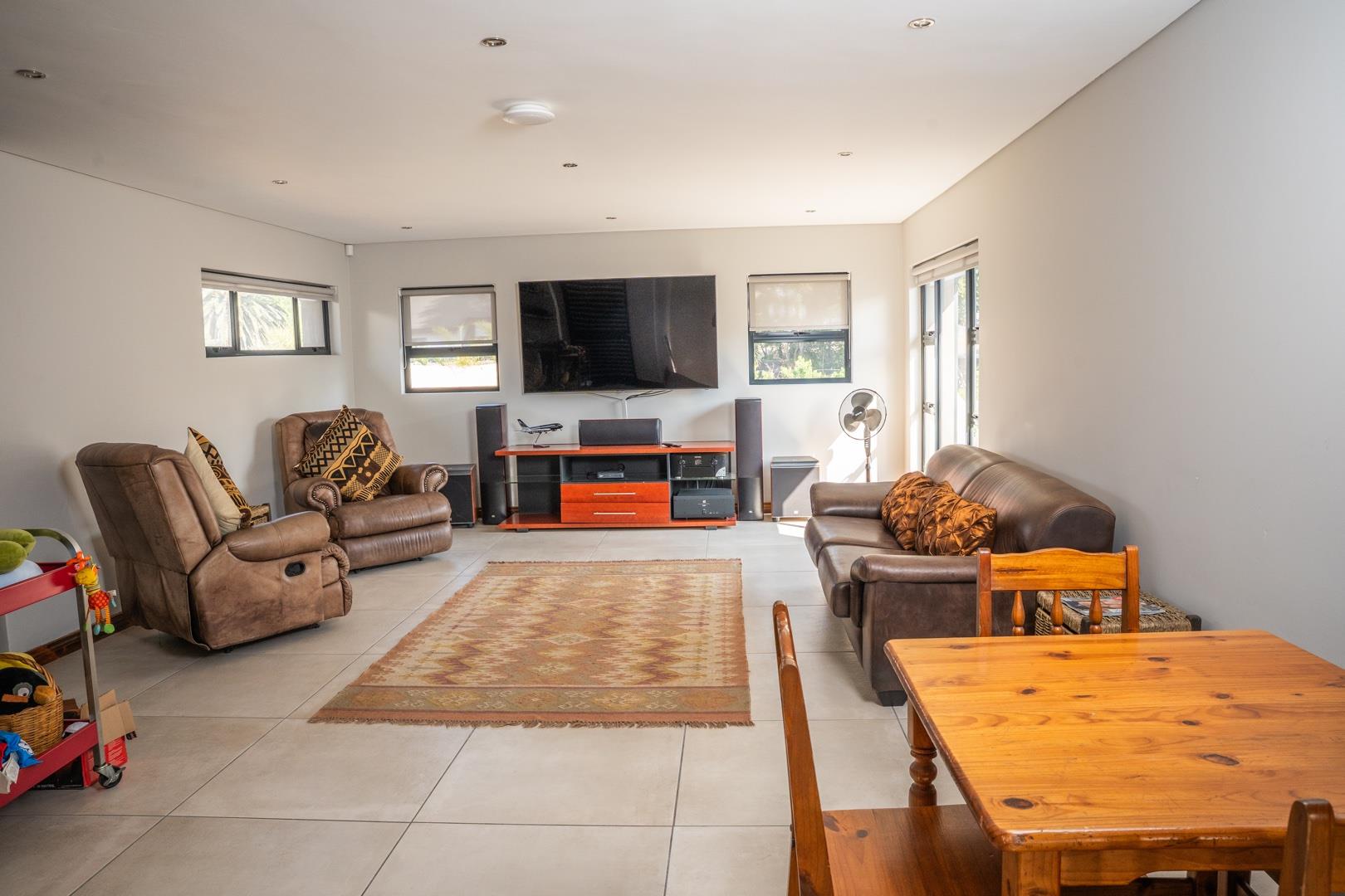 Enclosed entertainment patio with stacker doors and built-in braai, perfect for year-round entertaining